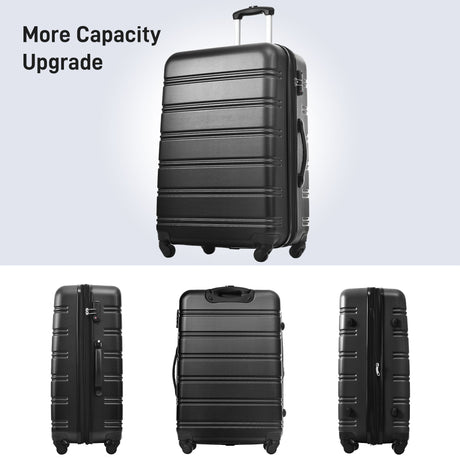 3 Piece Luggage Set Hardside Spinner Suitcase With Tsa Lock 20" 24" 28" Available - Black