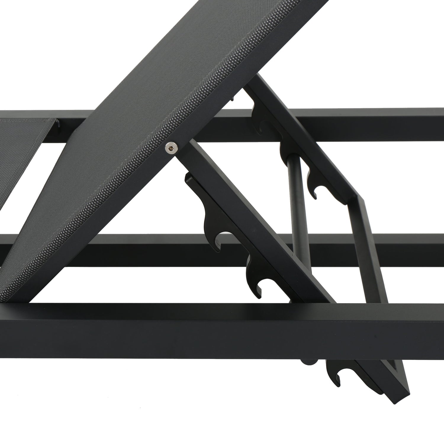 Chaise Lounge (Set of 2), Outdoor Patio Lounge Chairs With 5 Reclining Positions - Black / Gray