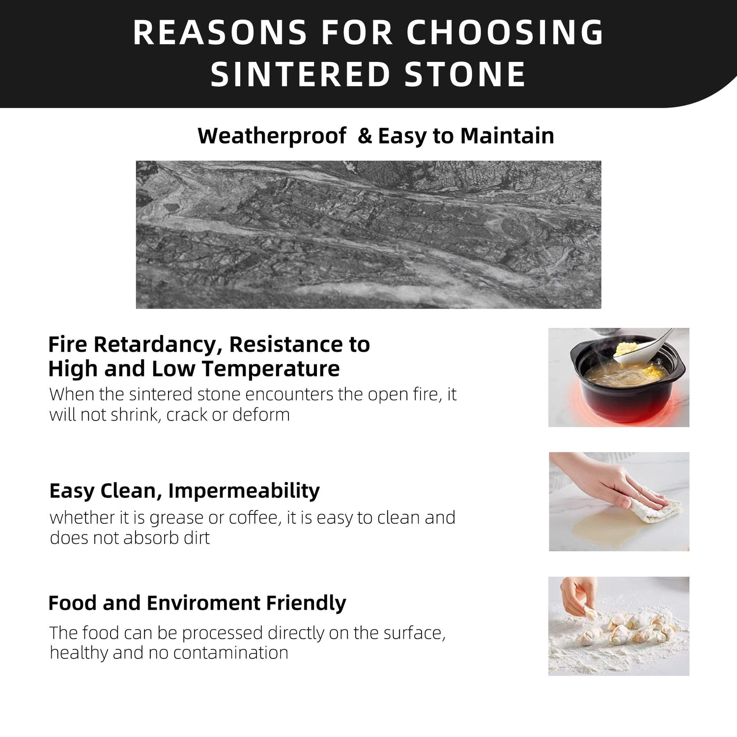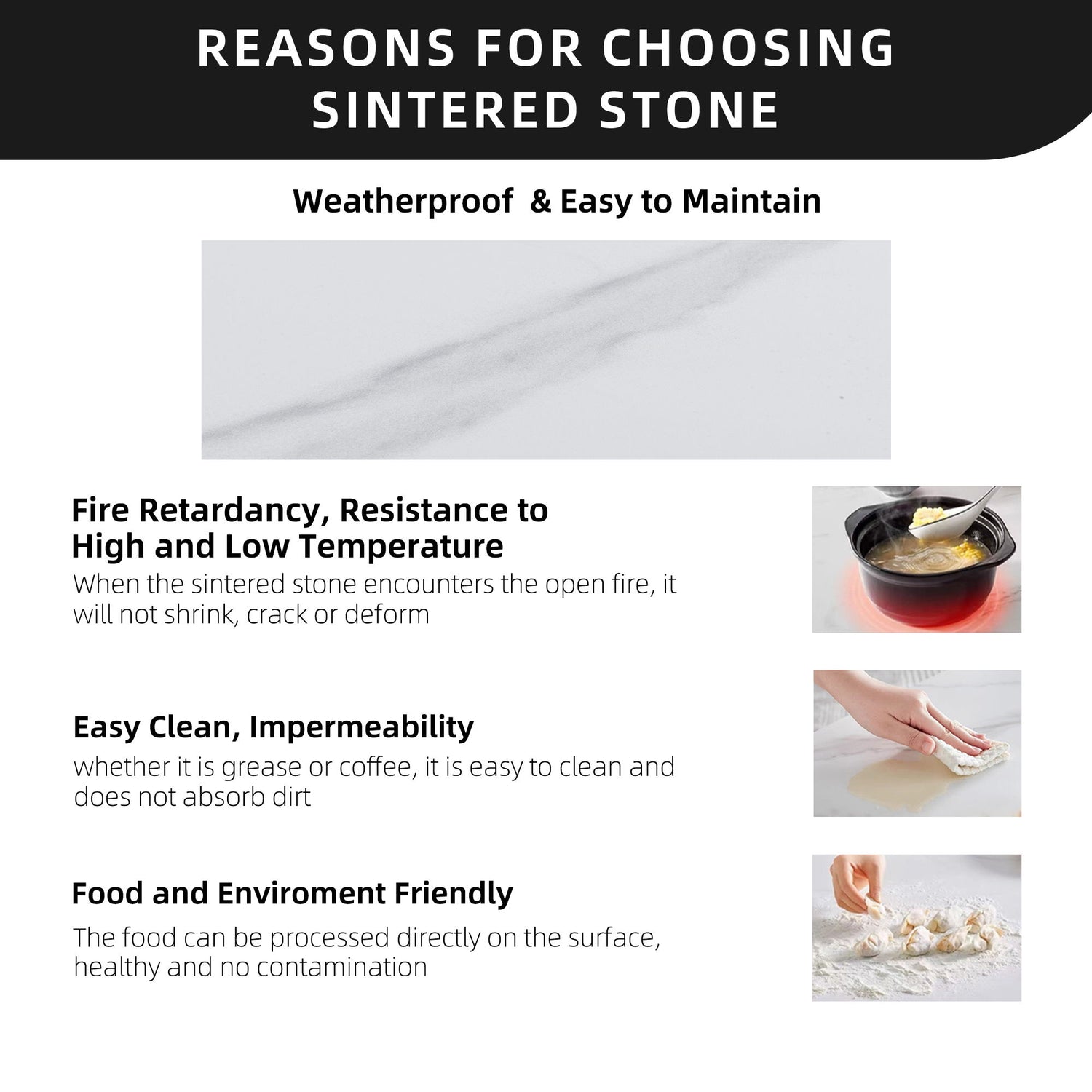 • Tabletop: Crafted from high-quality sintered stone, offering luxurious aesthetics, durability, and weatherproof performance.