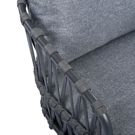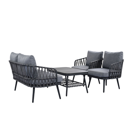 4 Piece Outdoor Patio Furniture Set, Metal Chairs With Woven Rope U Shaped Backrest