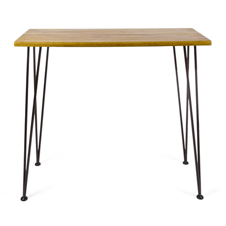 Dione Outdoor Industrial Acacia Wood Bar Set With Metal Frame And Slat Paneling - Brown