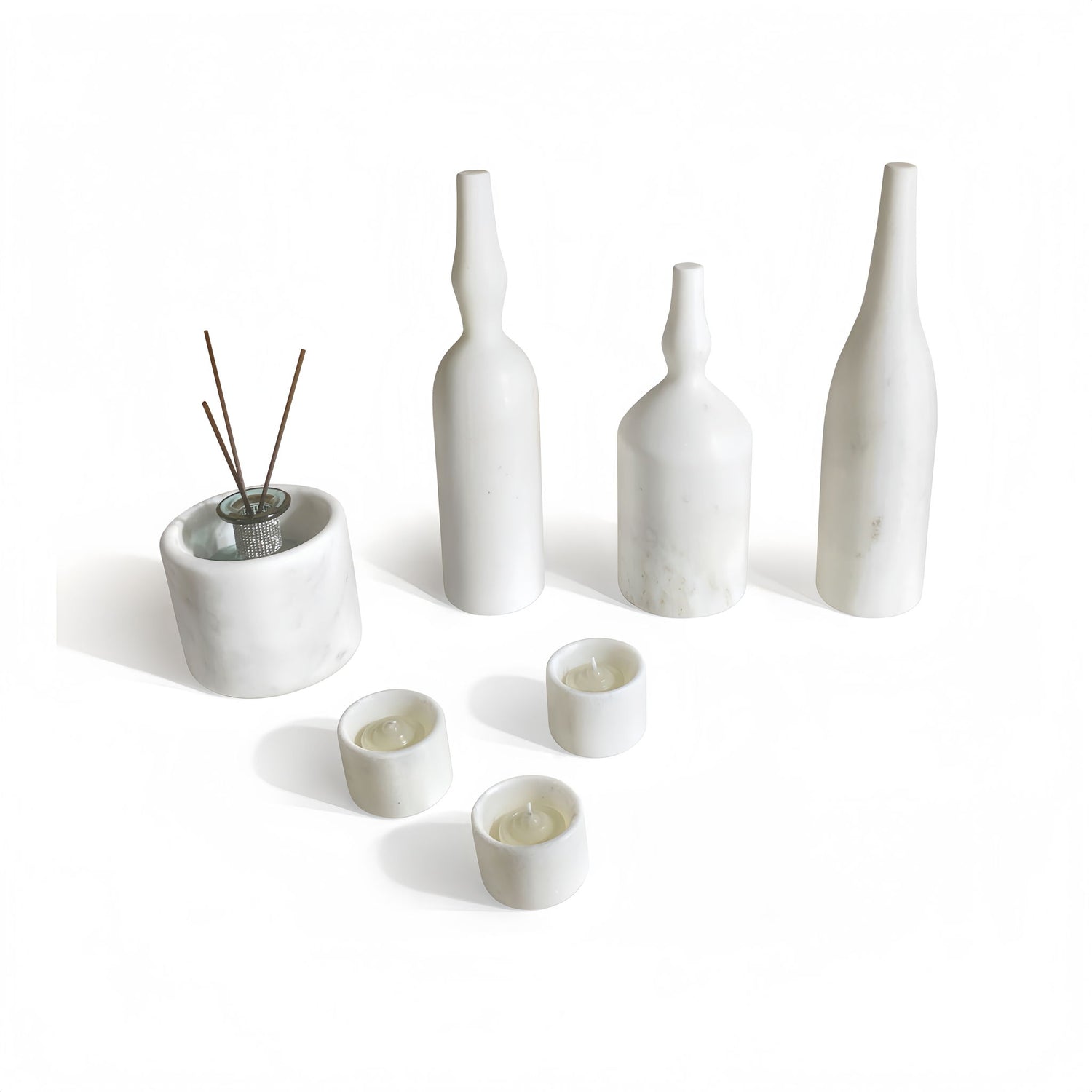 - Versatile Set: Includes diffuser holder, candle holders, and sculptural vases to complement any decor.