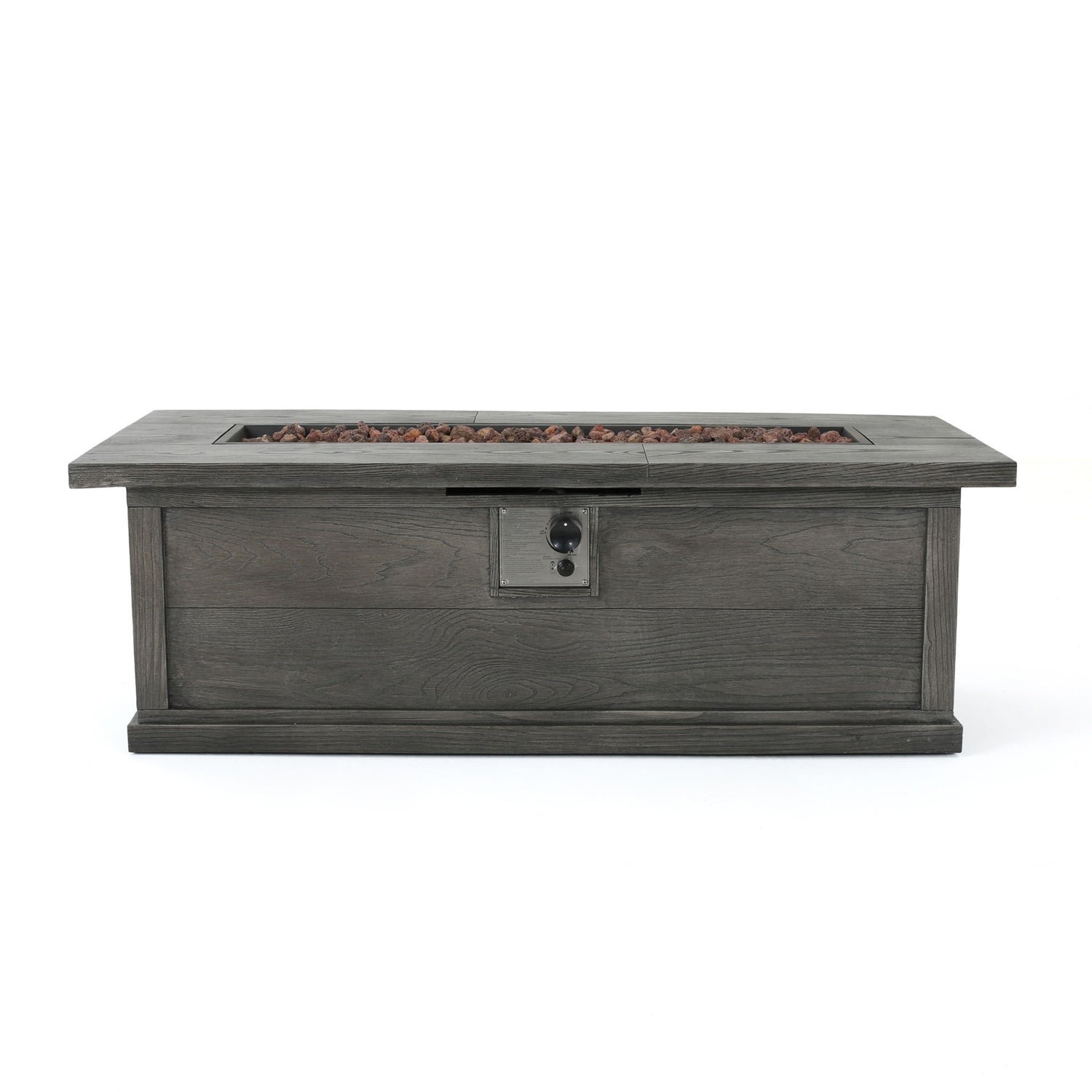 Transitional Rectangular Outdoor Propane Fire Pit With 50, 000 Btu, Tank Cover Not Included - Brown Wood Pattern